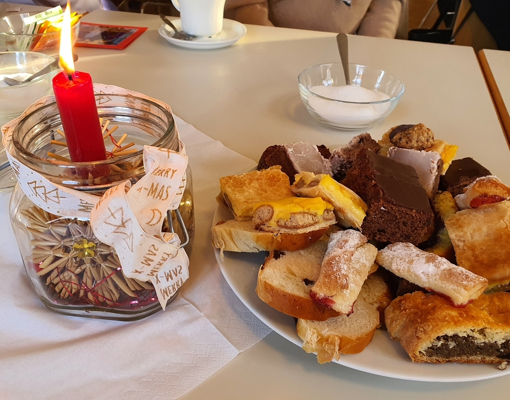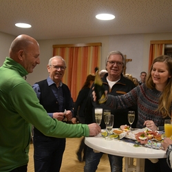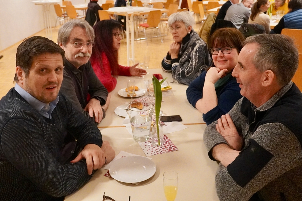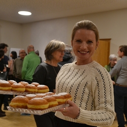 - Im Pfarrheim verwöhnten die hauptamtlichen Mitarbeiterinnen und Mitarbeiter alle Ehrenamtlichen mit Brötchen und Krapfen sowie mit Sekt und Orangensaft.