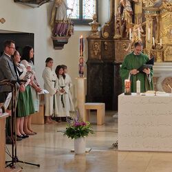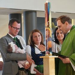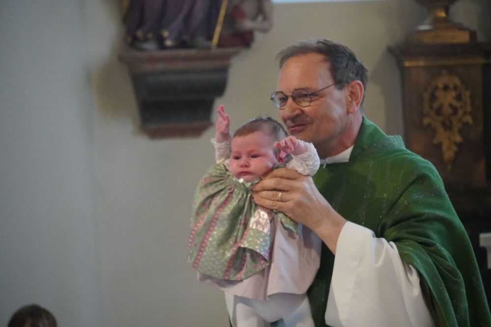 Eingebettet in die heilige Messe, die Vikar Gerhard Hatzmann zelebrierte, war die Taufe der kleinen Valerie. Berührende Momente, die die Erinnerung an die Taufe des eigenen Kindes in besonderer Weise wachriefen!