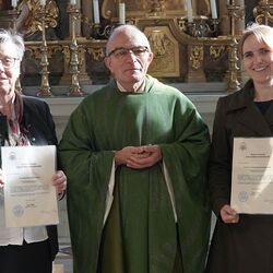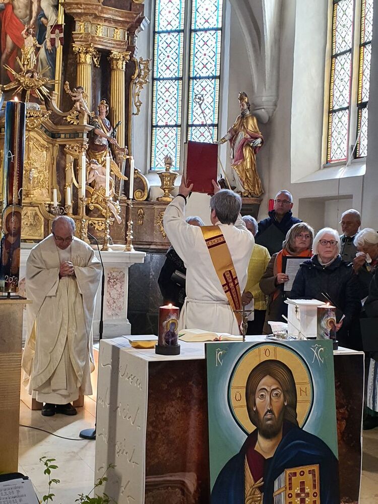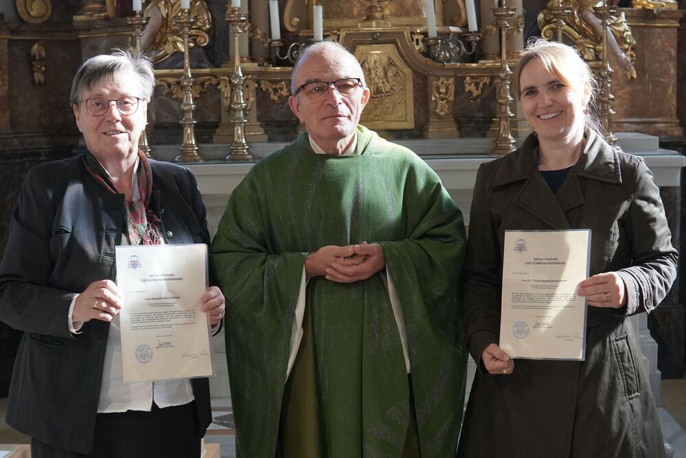 In diesem festlichen Rahmen überreichte Vikar Norbert Glaser auch unseren zwei neuen Kommunionhelferinnen, Elisabeth Schöpf und Dr. Ulrike Nowak-Hölzer, das Dekret zur Ausübung des Dienstes als Kommunionhelferin. Herzlichen Glückwunsch und viel Freude an der schönen neuen Aufgabe!