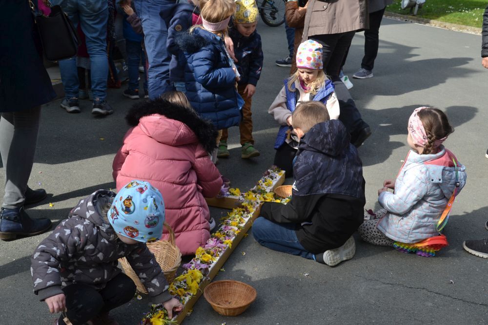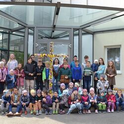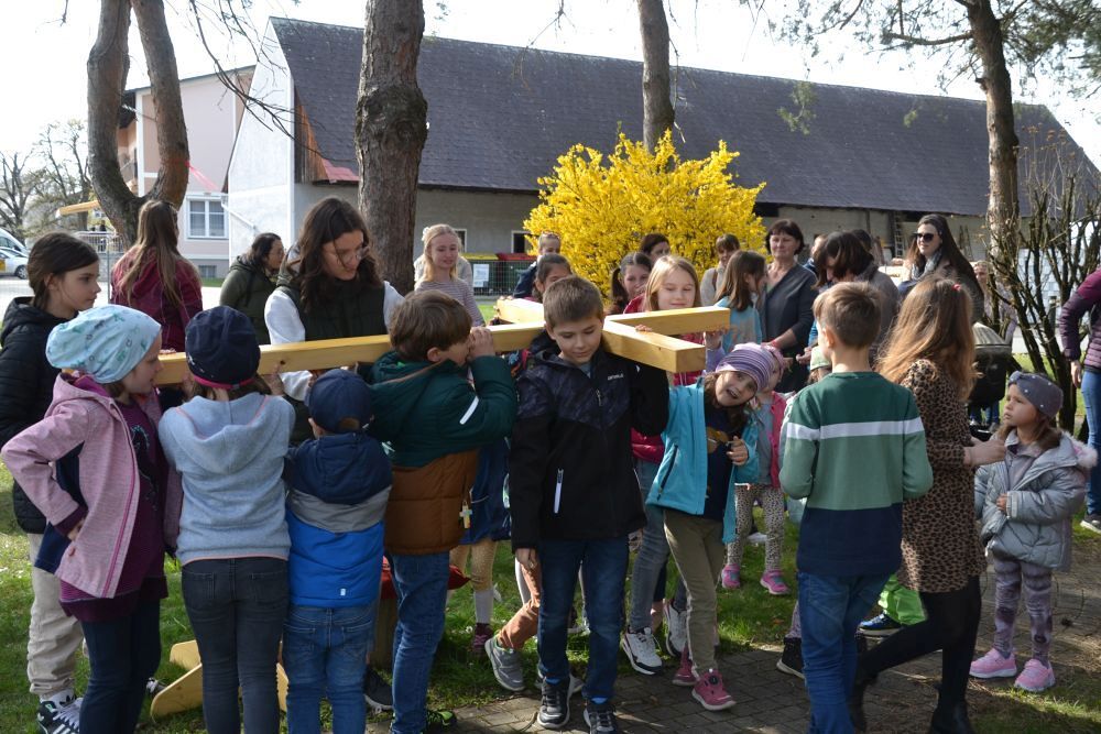 Jedes Kind durfte ein eigenes kleines Holzkreuz den gesamten Kreuzweg selbst mittragen. Bei jeder der fünf Stationen konnten die Kinder ihr Schlüsselanhänger-Kreuz kreativ aufwerten. Dafür wurden passend zur Geschichte rund um Jesus und Ostern die vier Jungscharfarben Rot, Gelb, Grün und Blau miteingearbeitet. Der Grundgedanke des Kinderkreuzwegs war es, die Kinder selbst Jesus sein zu lassen. Dies konnte mit Hilfe der verschiedenen Sinne erlebt werden. Abschließend durften die Kinder passend zur Auferstehung das Holzkreuz mit frischen Blumen bekleben und Kresse, als Symbol des Lebens, säen.