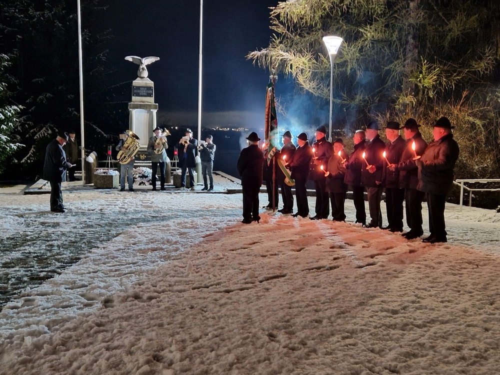 Mit Fackeln und Blasmusikklängen zelebrierte der ÖKB nach der Adventkranzsegnung die alljährliche Lichterbaumentzündung.