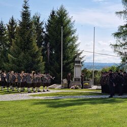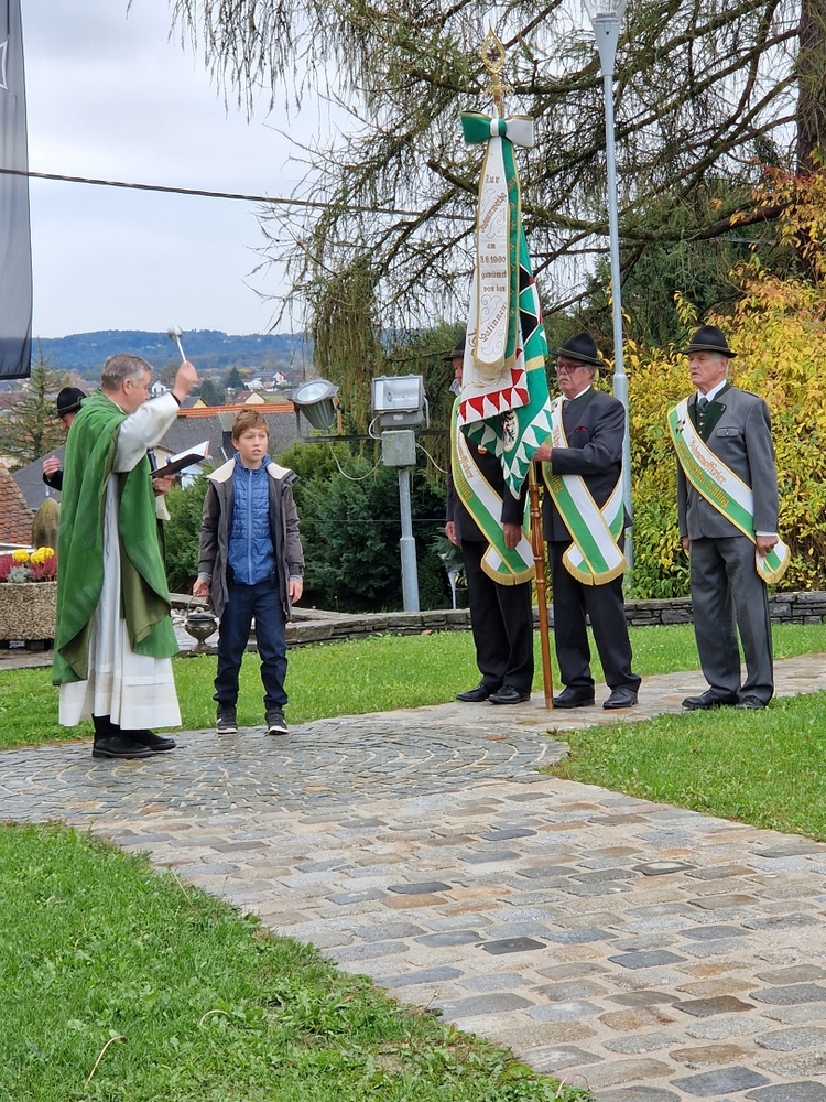 Pfarrer Claudiu Budau zelebrierte die heilige Messe und sprach das Segensgebet beim Kriegerdenkmal, wo als Zeichen der Wertschätzung im Anschluss an die Rede von Obmann Josef Gerlza auch ein Kranz niedergelegt wurde.