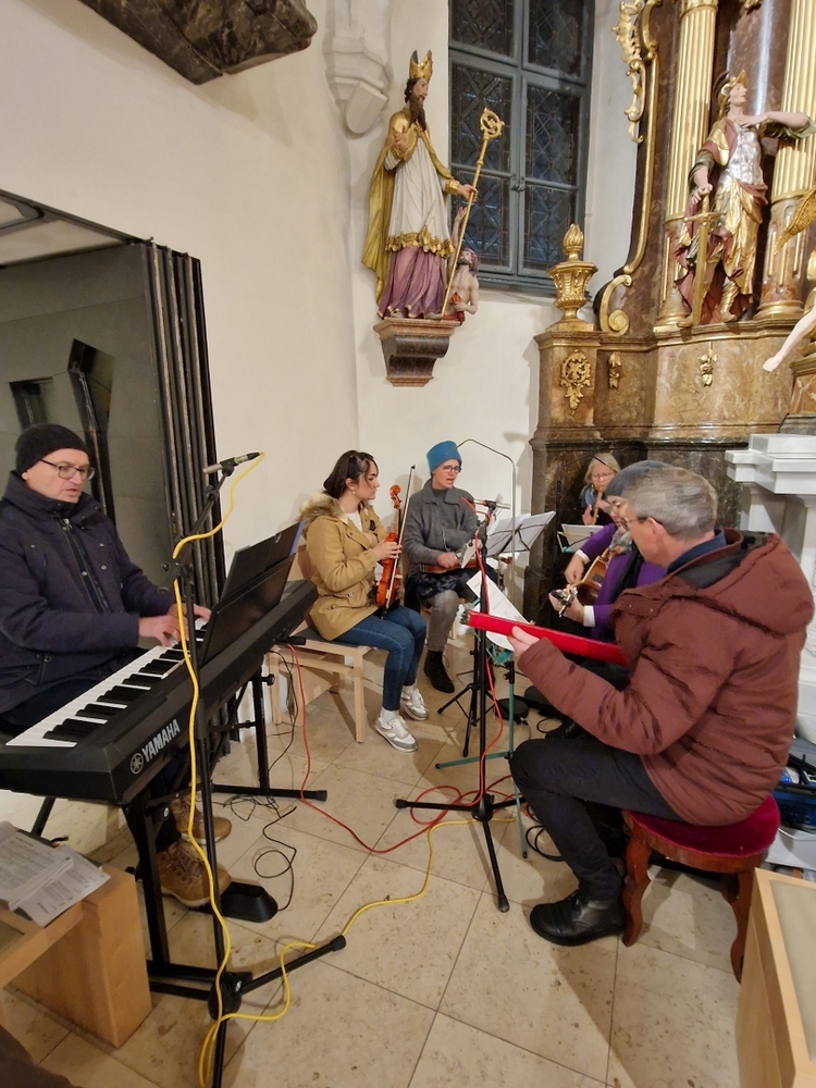 • an die sechs Musiker, die in ihrer Freizeit unseren Gesang unterstützten und den Gottesdienst feierlich mitgestalteten: Chiara und Katharina Guggi-Bärnthaler (Querflöte), Helma Arjmand (Geige), Ursula Schrei (Gitarre), Maria Kleindienst (Gitarre) und Michael Krenn (Bass)