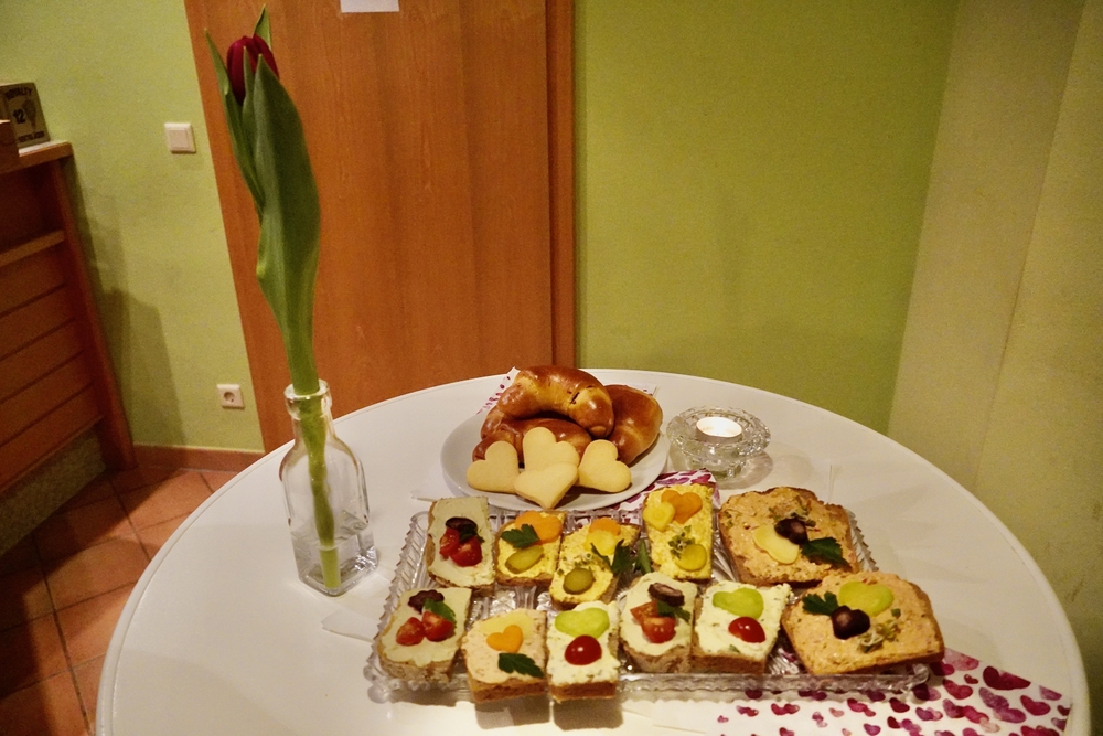 Die wunderbare Musik mit den einfühlsamen Liedern, die Paarsegnung, eine Blume zum Mitnehmen und die herzhafte Agape erfreuten alle Liebenden, die gekommen waren.