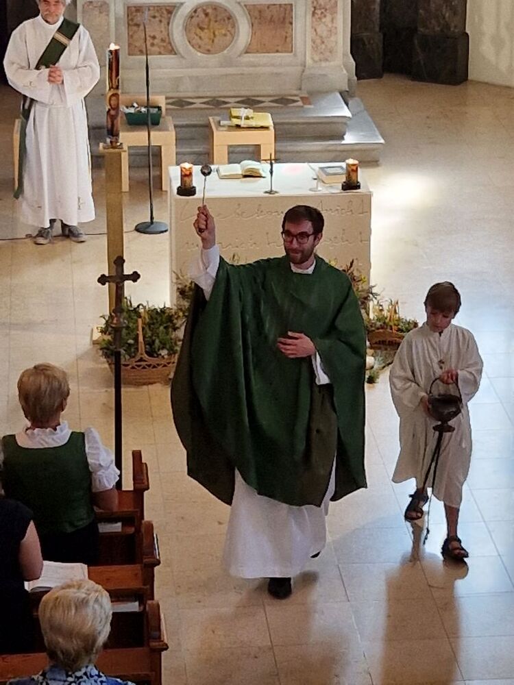 In diesem Sinne begann am Sonntag, dem 13. August, der Gottesdienst mit Mag. Markus Krill, der am 25. Juni 2023 im Grazer Dom zum Priester geweiht worden war und nun in unserer Pfarre eine Nachprimiz feierte.