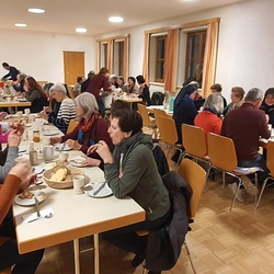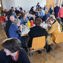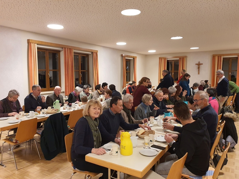 Bei einer gemütlichen Agape im Pfarrheim gab es dann noch angeregte Diskussionen über unseren eigenen kleinen möglichen Beitrag zum Weltfrieden.