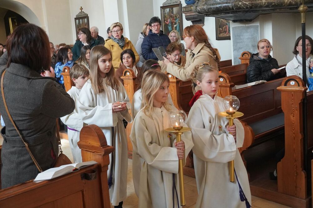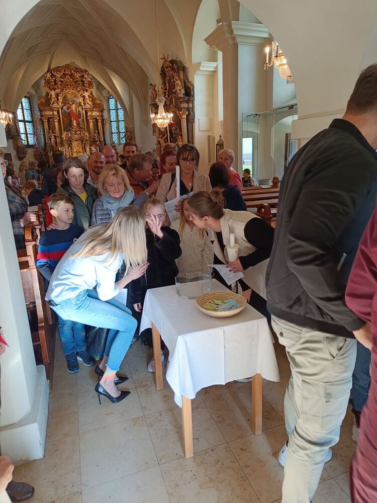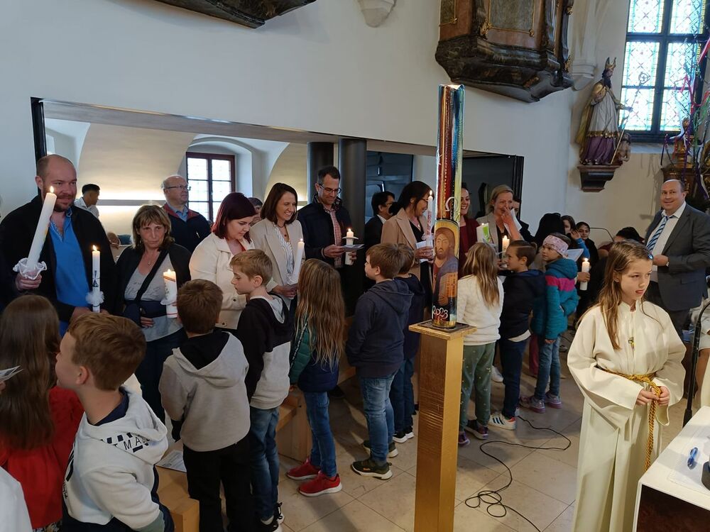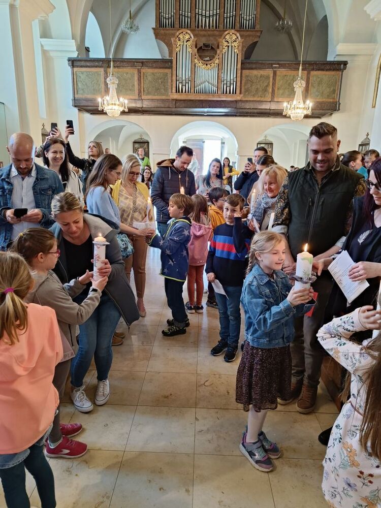 Am 22. April feierten die Erstkommunionkinder nach ihrem letzten Workshopnachmittag ihr Tauferneuerungsfest um 16:30 Uhr in unserer Pfarrkirche.