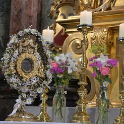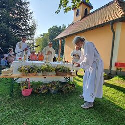 Auch die mitgebrachten Kräuterbüschel wurden anlässlich des bevorstehenden Marienfeiertages gesegnet.