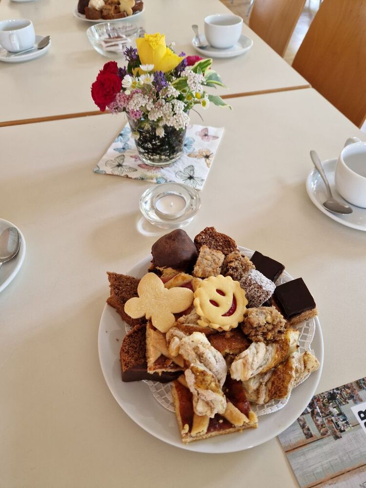Beim anschließenden Pfarrcafe des Kirchenchores setzte sich diese freudige Stimmung fort und alle genossen bei Kuchen und Kaffee oder Tee die nette Gemeinschaft!