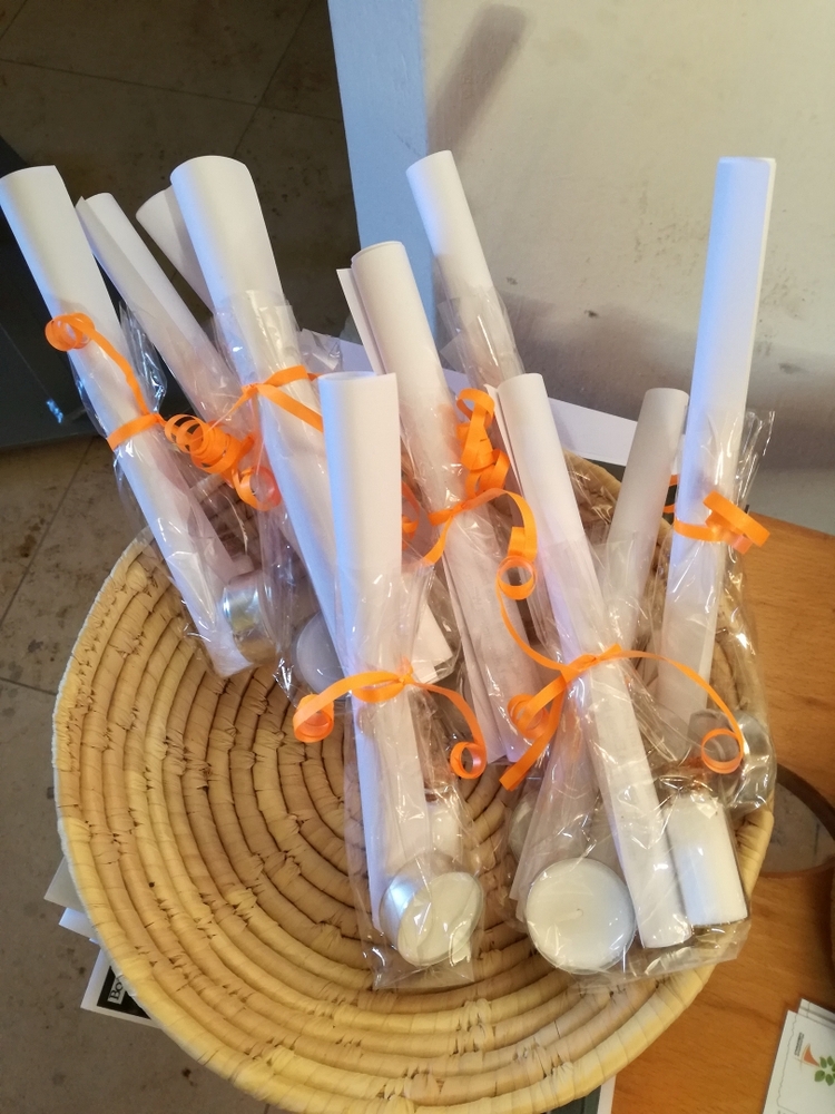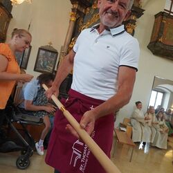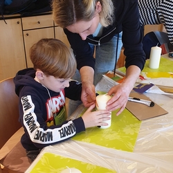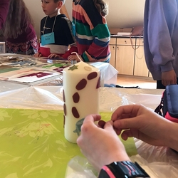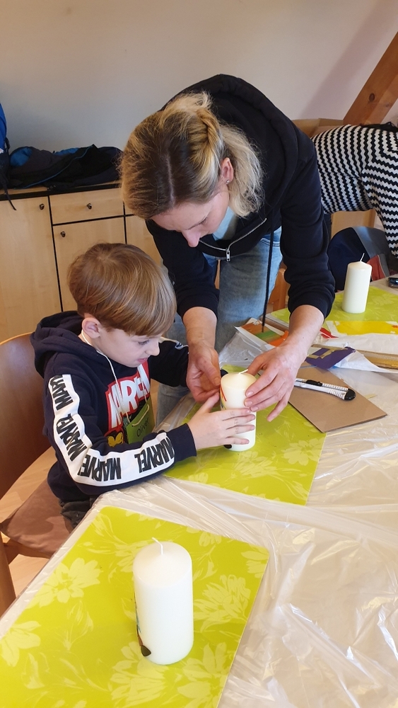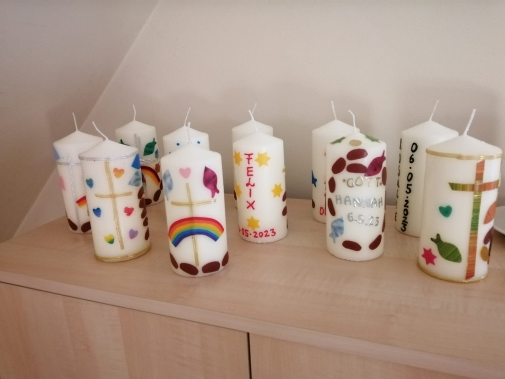 - Wir gestalten eine Erinnerungskerze zum Evangelium „5 Brote und 2 Fische“