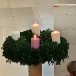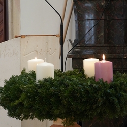 Die rosafarbene Kerze am Adventkranz macht es deutlich, sie erstrahlt als Zeichen der Vorfreude auf das bevorstehende Weihnachtsfest.