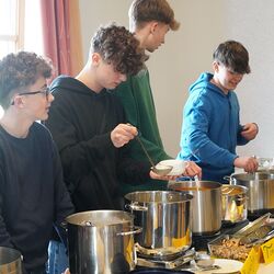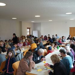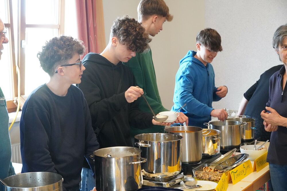 Nach der liebevoll gestalteten Wort-Gottes-Feier mit WGF-Leiterin Elisabeth Schöpf, traf man sich zum Suppen-Essen im Pfarrheim. Und wir hatten zweimal „volles Haus“, zuerst in der Kirche und dann im Pfarrheim! Über die vielen Gäste freuten sich der Pfarrgemeinderat und eine Firmgruppe mit ihren Begleiterinnen, die Suppe gekocht hatten und fleißig mitanpackten, sodass der Suppensonntag ein toller Erfolg wurde. Der Erlös kommt der KFB und der Pfarrcaritas zugute.