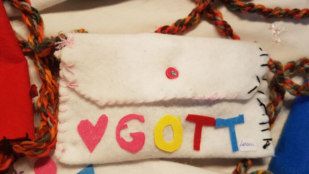 Die Filztaschen, die den Kindern am Ende der Feier überreicht wurden, sind Zeichen für unser eigenes Leben. Sie zeigen uns, dass so manches in unserem Leben nicht immer so einfach ist, dass es ganz schön viel Vorbereitung und Geduld braucht bis so ein Werkstück/unser Leben fertig/vollendet ist.