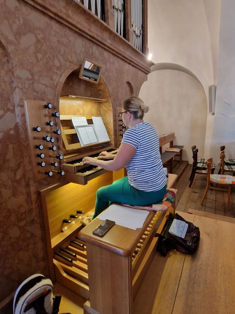 Der KOU KOU TANZ der VS-Kinder und aufbauendes Singen, die Kirchenführung, wo wir „Steine reden lassen“, und ein kleines, feines Orgelkonzert von Valentina Tehovnik belebten das Pfarrfest genauso wie „Gstrichn vui“ oder die musikalische Darbietung von Valentina und Rita. Die Collage einer kreativen Wunschkirche und bunte Steine entlang der Kirchenmauer werden noch länger an das aktive Mitbauen der Kinder erinnern.