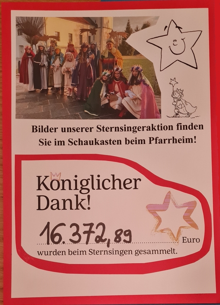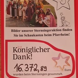 Durch die großartige Spendenbereitschaft der Pfarrbewohnerinnen und Bewohnern durften die Sternsinger diesmal 16.372,- Euro in Premstätten sammeln.