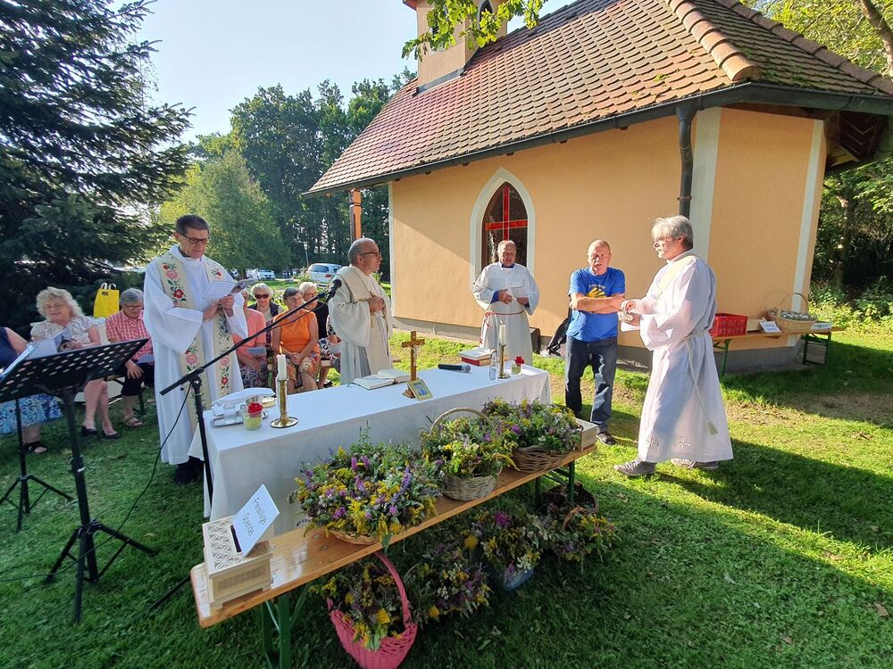 Mit einer wunderbaren Hl. Messe und anschließender tollen Feier, bei strahlendem Wetter, köstlichen Brötchen, leckeren Mehlspeisen, toller Musik, in entspannter Atmosphäre, mit würzigem Kräuterduft und der Kräuterweihe, haben wir Mariä Aufnahme in den Himmel wirklich würdig gefeiert. HERZLICHEN DANK ALLEN, die so zahlreich mitgeholfen haben und denen, die in all den Jahren für die Kaiserwald-Kapelle gesorgt haben.