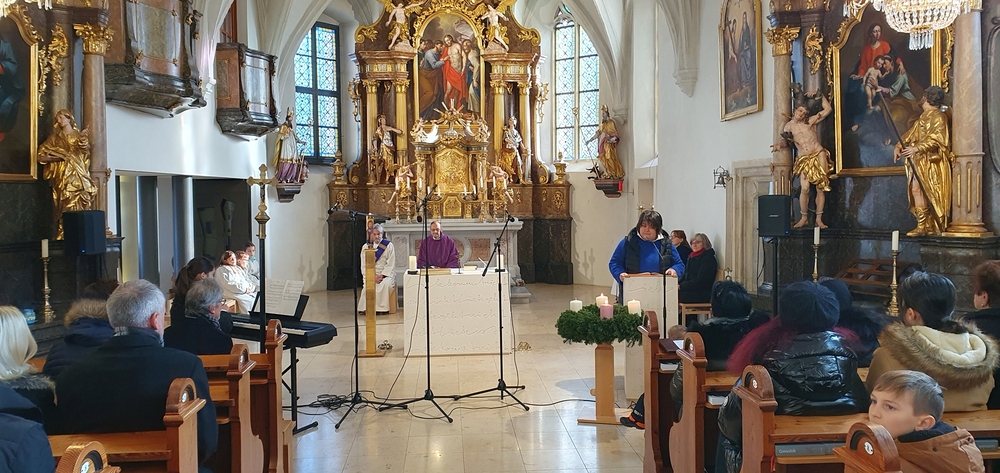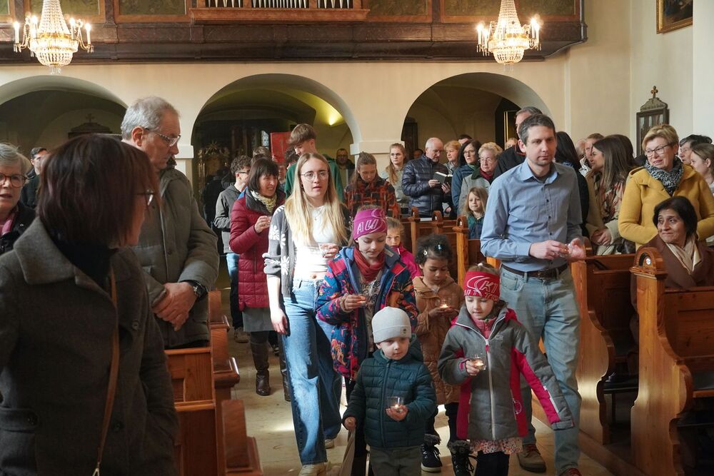 - Zuerst wurde in der Pfarrkirche mit einer Andacht gedankt.