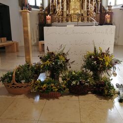 So vielfältig und bunt, wie die Erntegaben sind, ist auch unsere Gemeinschaft, wenn wir in der Kirche feiern und DANKE sagen. Dazu haben wir guten Grund, denn wir sind reich beschenkt und müssen nicht - wie Millionen Menschen auf dieser Erde - hungern.