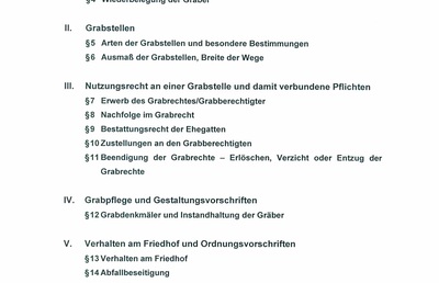 • Einhaltung die in der Friedhofsordnung bzw. vorgegebenen Maße