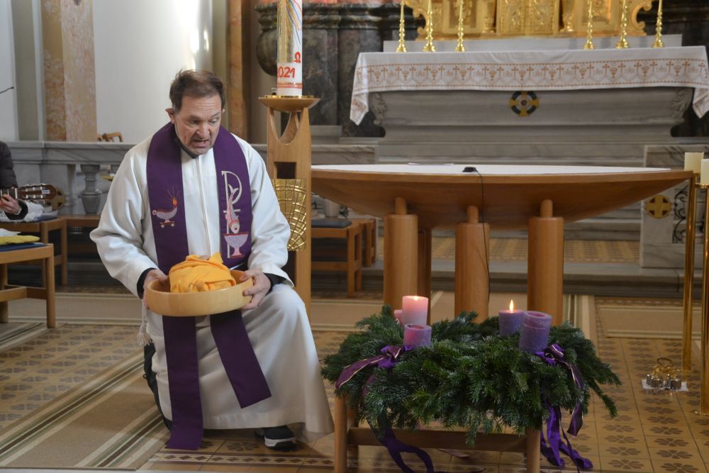In der Pfarrkirche gestalteten die Kinder mit ihren Pädagoginnen eine Vorweihnachtsfeier. Vikar Gerhard Hatzmann zündete die Kerzen des Adventkranzes an, die Kinder spielten die Herbergssuche, Vikar Gerhard segnete alle zum Abschluß.