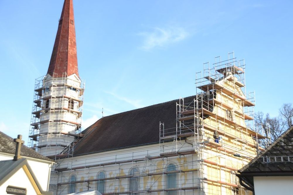 In der zweiten Hälte des September 2016 begannen die Renovierungsarbeiten der Außenfassade und der Kirchturmspitze unserer Pfarrkirche.
