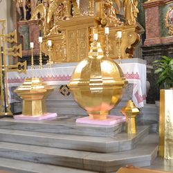 - Teile der Turmspitze wurden renoviert und vergoldet