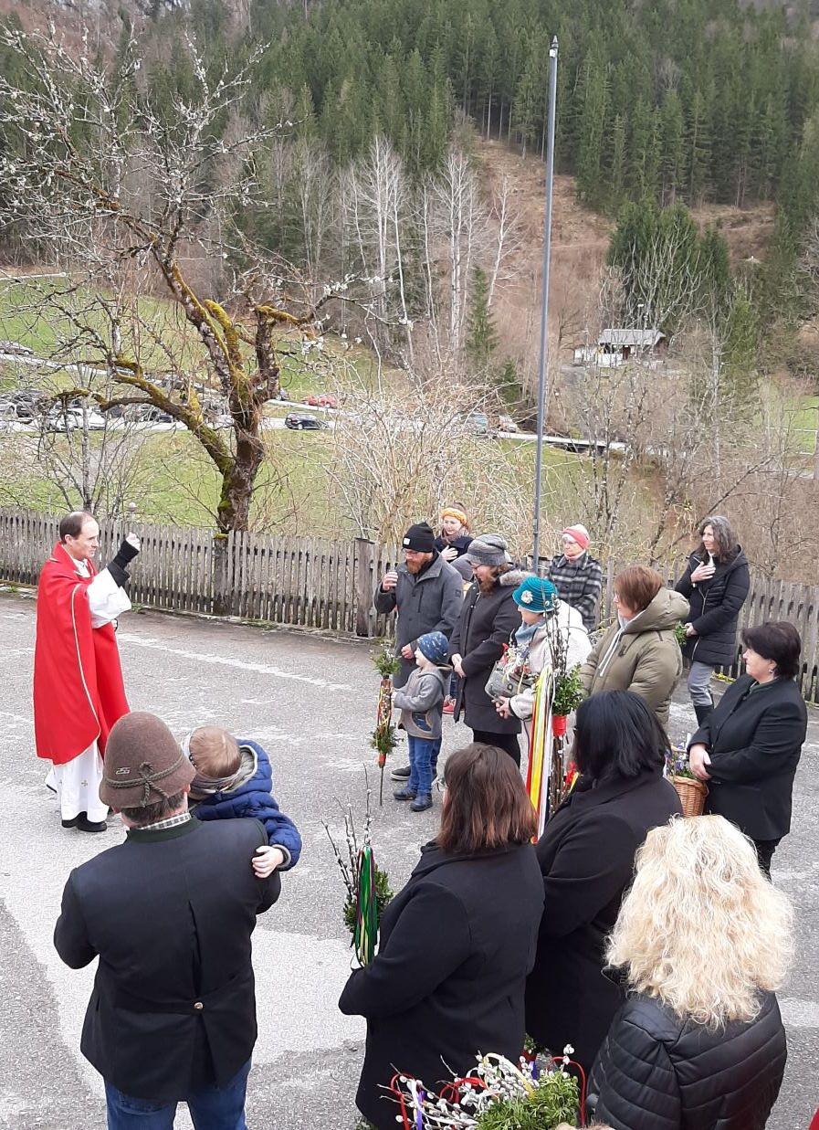 Vor dem Gottesdienst wurden wieder Palmbuschen vom Pfarrgemeinderat, gegen eine kleine Spende angeboten. Die Palmweihe