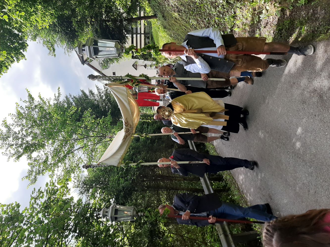 Herzlichen Dank an alle, die beim Schmücken der Kirche, Statuen, Fahnen und Altäre geholfen haben. Vergelts Gott an Pater Thomas , der das Fronleichnamsfest mit uns gefeiert hat. Zum Abschluss möchten wir uns bei allen Kindern und Erwachsenen, fürs Tragen von Kreuz, Statuen, Fahnen, Himmel und Laternen recht herzlich bedanken. Ohne eure Mithilfe und das aktive Mitwirken bei der Prozession wäre so ein traditionelles Brauchtum nicht möglich. (mehr Bilder Fronleichnam)